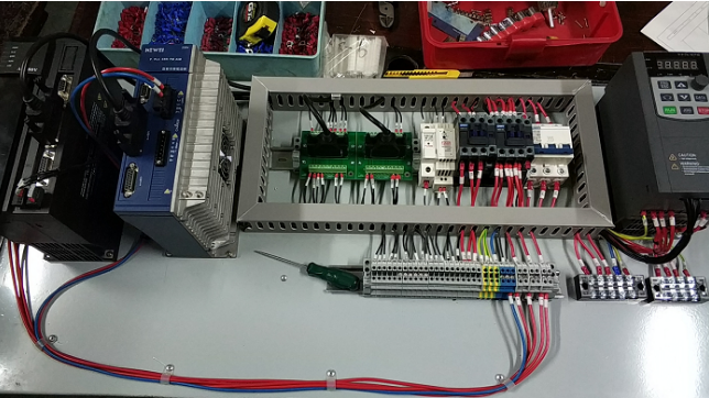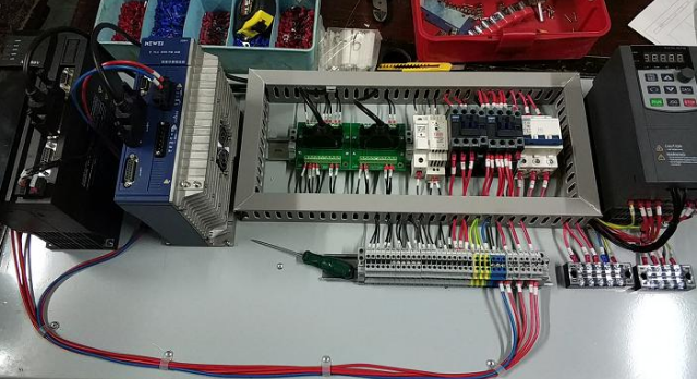根据客户工艺要求,搭建控制系统、并进行编程、组态,是自动化公司的日常工作。常规控制系统由PLC(控制板、控制器)、伺服(变频器)、触摸屏构成。如下图: