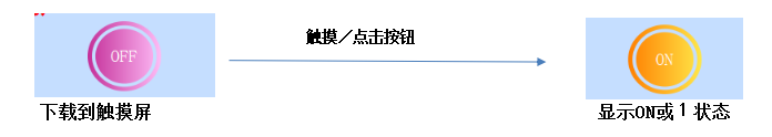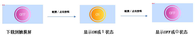 定义:位按钮可以用来操作和显示与触摸屏所连接的设备的位地址 ON/OFF状态,或者1/0状态。