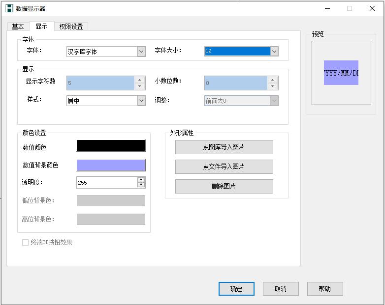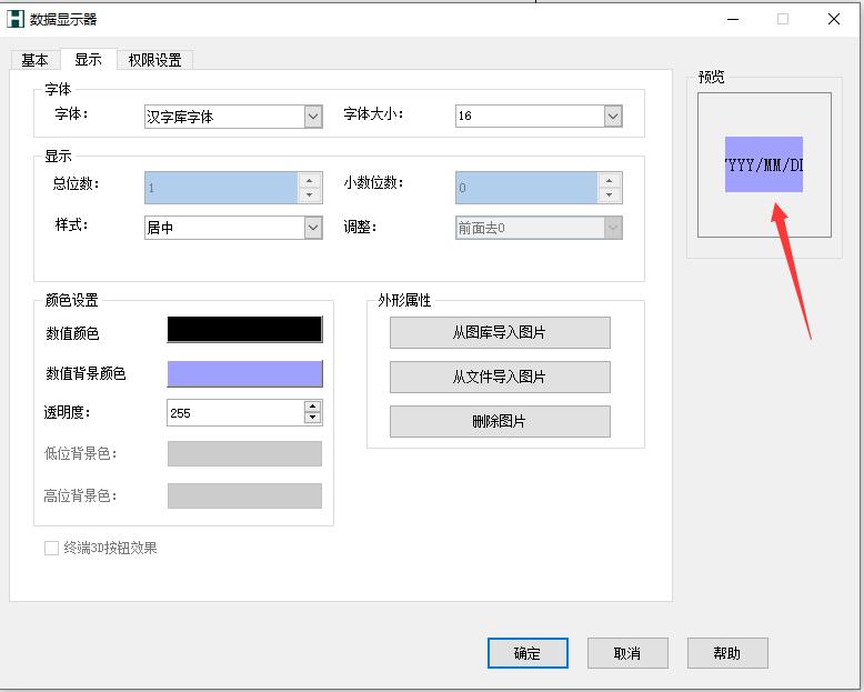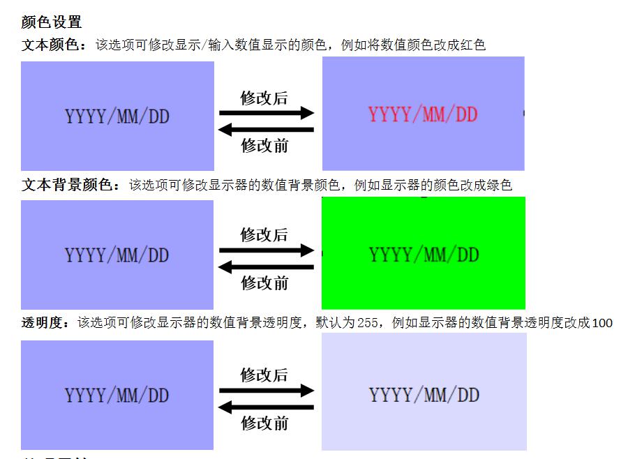 定义:对数值显示器外观、背景色、文本和文本对齐方式进行设置