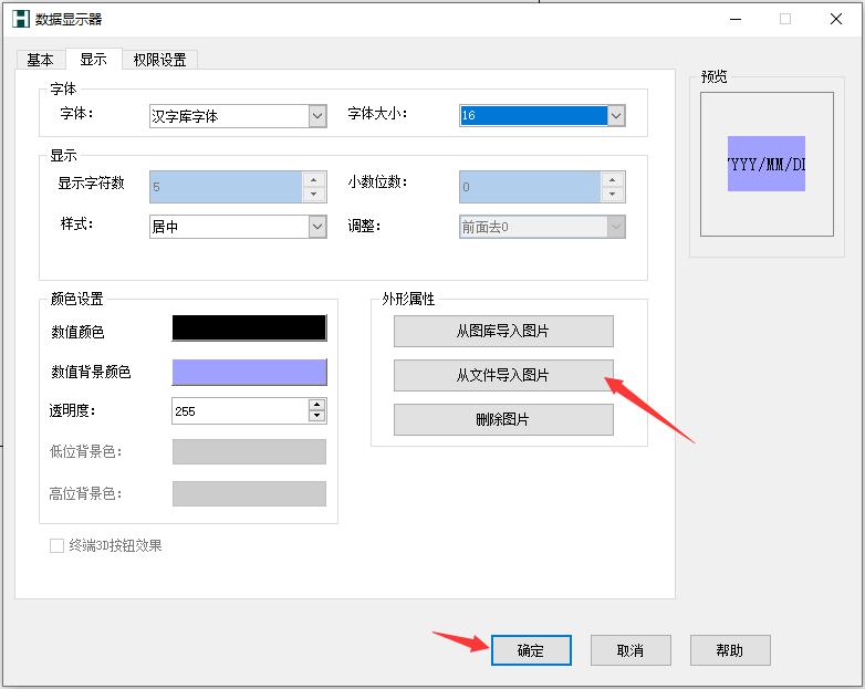 从文件中导入图片:从本地选择合适的图片作为数值显示器的外形,例如